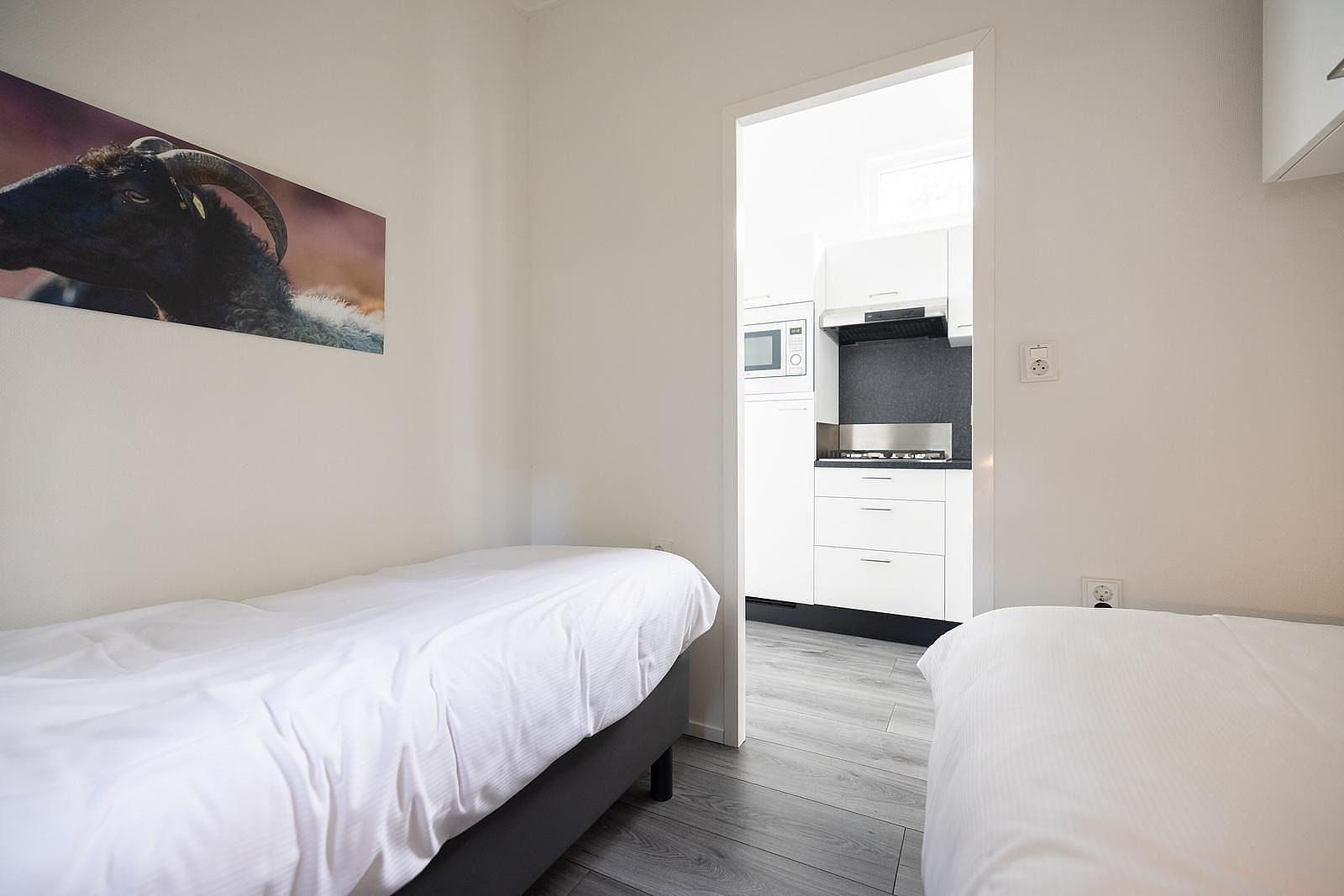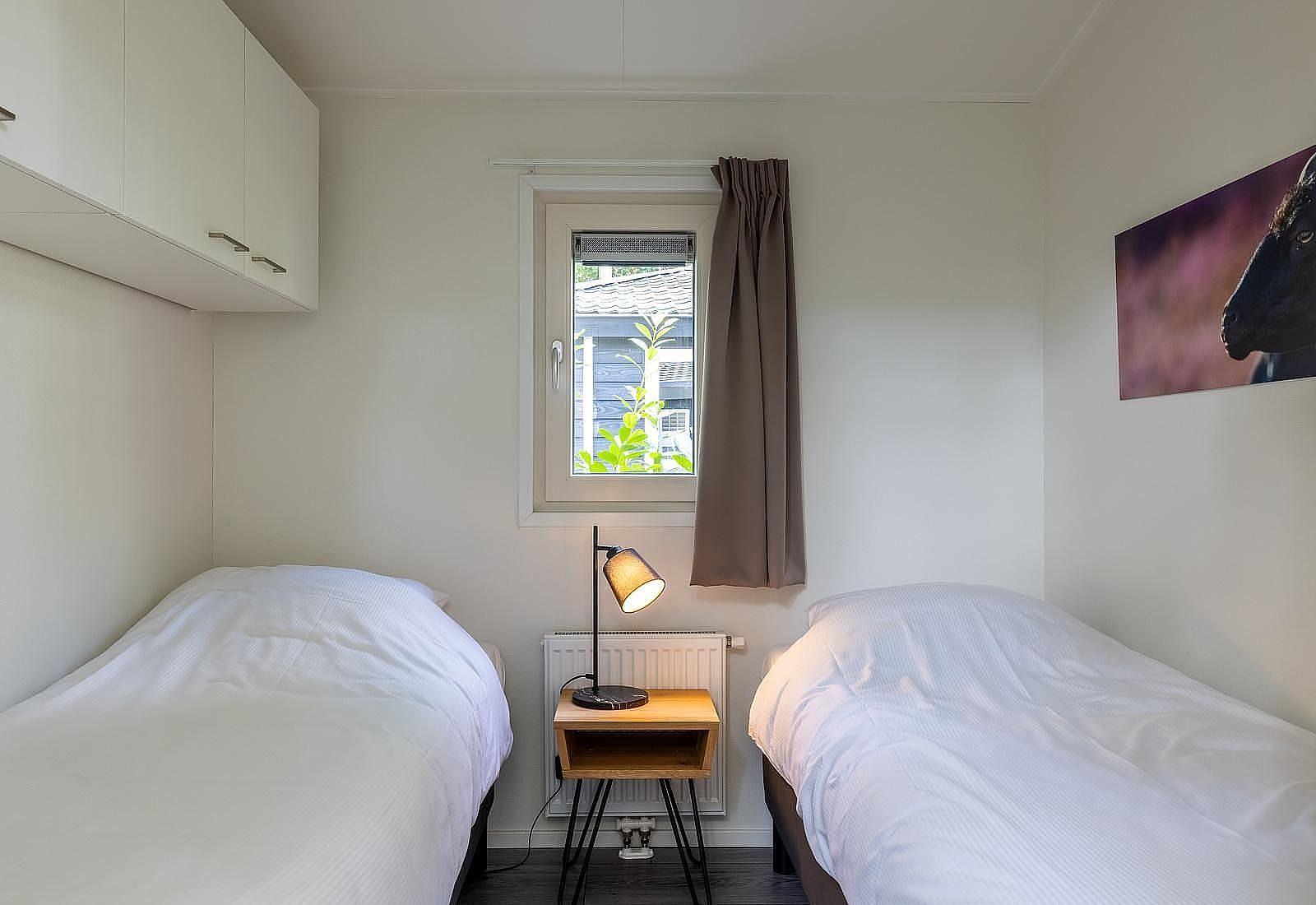De woning is ingericht voor vier personen en heeft een praktische indeling met een lichte woonkamer, een open keuken, twee slaapkamers en een badkamer. Je zit hier niet achteraf op een hoekje, maar juist in het hart van het park. Ideaal als je met kinderen komt, of als je simpelweg graag de levendigheid en faciliteiten binnen handbereik hebt.