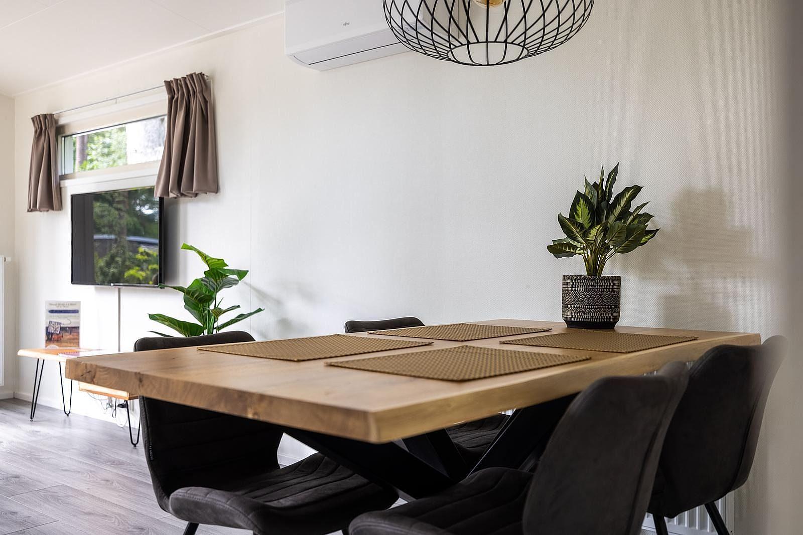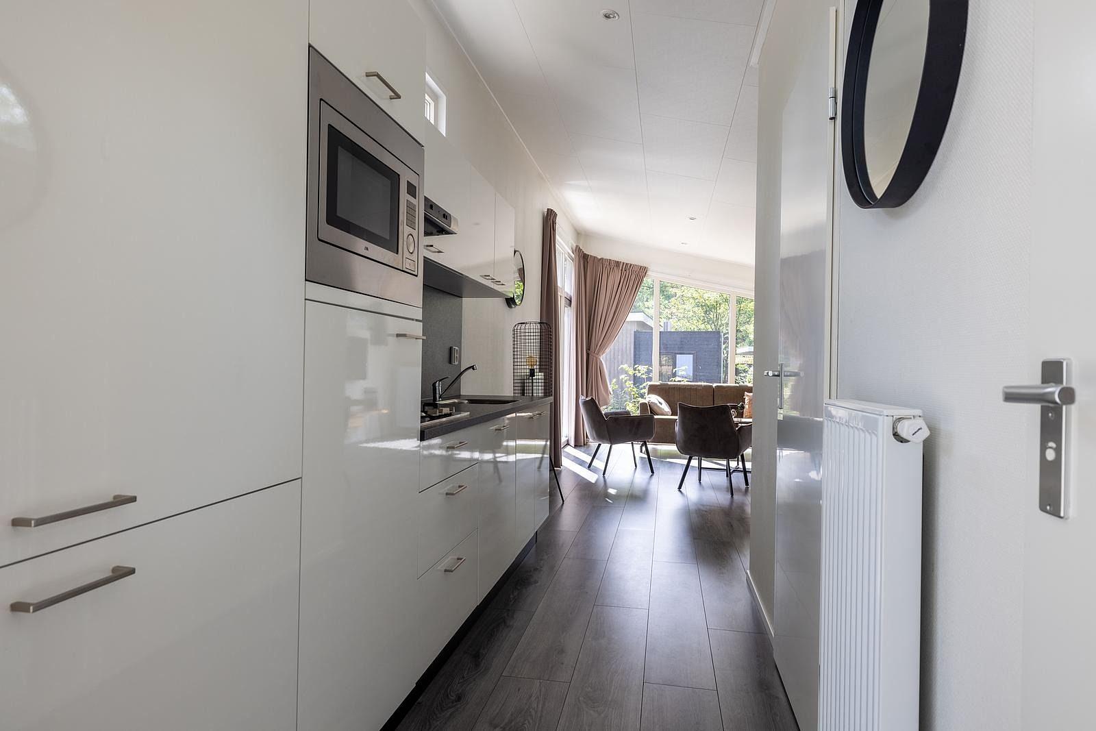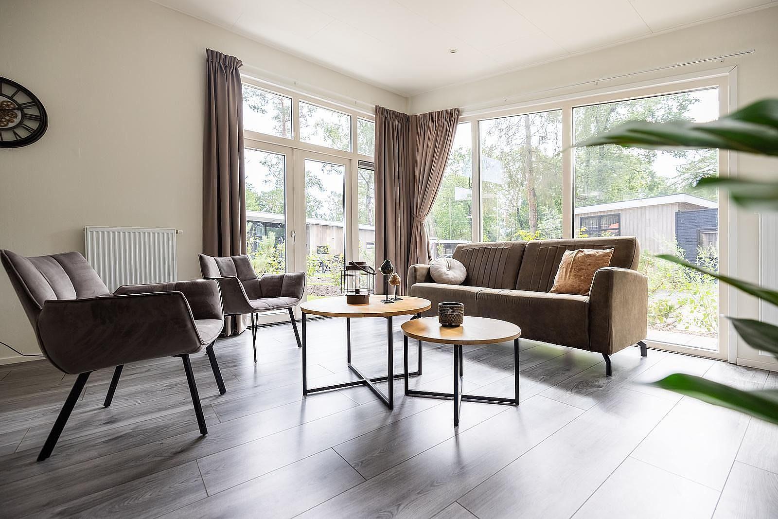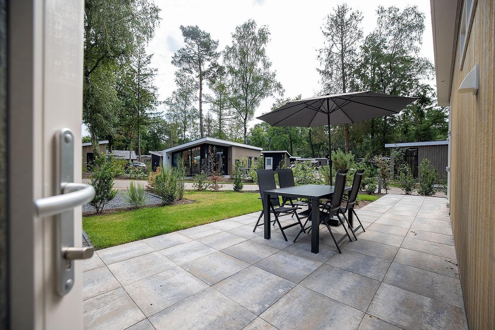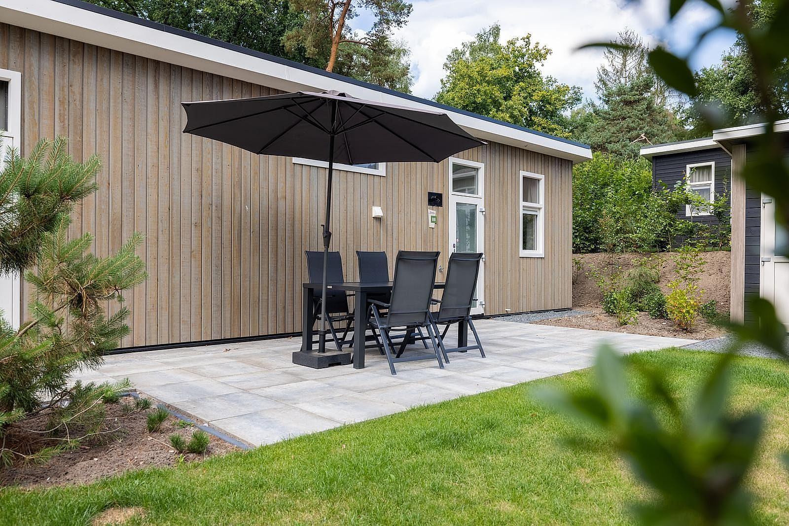 Buiten heb je je eigen plek bij de woning en parkeren kan bij de woning. De omgeving is puur Veluwe, dus je combineert het gemak van het park met natuur die letterlijk om de hoek begint. Hoenderloo, bossen, heide en mooie routes. Je stapt zo de stilte in wanneer je daar zin in hebt.